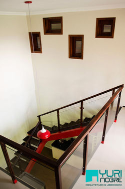 Descrição: A Residência IJA foi também batizada de casa Áurea devido ao conceito que norteou o seu projeto: a proporção áurea, que inspirou desde a altura de fachada até o projeto de esquadrias. Nela encontramos ambientes bem ventilados, bem iluminados e com um eficaz sistema de proteção de fachada através de elementos de proteção cuidadosamente calculados e brises de madeira que funcionam ao mesmo tempo como barreira física e elemento estético da fachada. Suas cores se baseiam em tons que dão uma cara rústica, mas ao mesmo tempo moderna para sua arquitetura. Todas as suas esquadrias foram projetadas exclusivamente para a residência em questão procurando manter uma boa iluminação natural e comunicação com o ambiente externo e seu jardim.