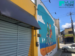 Descrição: Localizado em um importante corredor comercial da cidade de Fortaleza, no bairro Montese, este conjunto de pontos comerciais precisava ser reformado, mas com uma nova roupagem, a reforma tipo Retrofit de Fachada veio para valorizar cada um dos pontos comerciais já alugados e atrair ainda mais interessados. Na reforma foram utilizadas pinturas em formas geométricas, toldos de proteção solar alinhados a uma boa estética de fachada e como grande protagonista um grande paredão grafitado e realçado com iluminação de destaque.